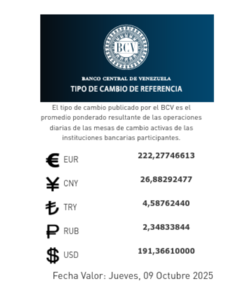 El Banco Central de Venezuela (BCV), fijó las tasas del dólar y euro oficiales que estarán vigente para hoy 9 de octubre, presentando un leve aumento en el precio en comparación al cierre anterior.